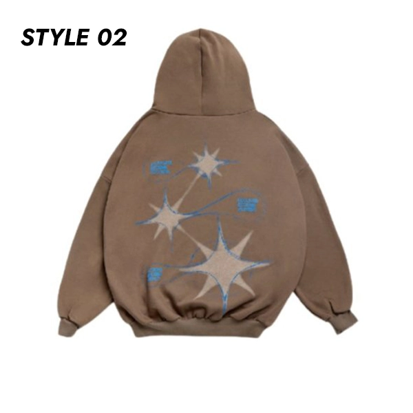 Constructed with the premium fleece fabric, the attire is available in beige and brown color. Both the colors used are subtle and soothing to the eye. The outer wear features long sleeves with knitted cuffs and hooded collar. It also has two spacious pouch pockets at the front and the design done on it is a tree deliberately set near the pocket to showcase the tree growing from it. At the back, the Alchemai Tree Of Life Pullover Hoodie features a complete tree cycle which symbolizes the circle of life. While the second style has stars connected on the back.