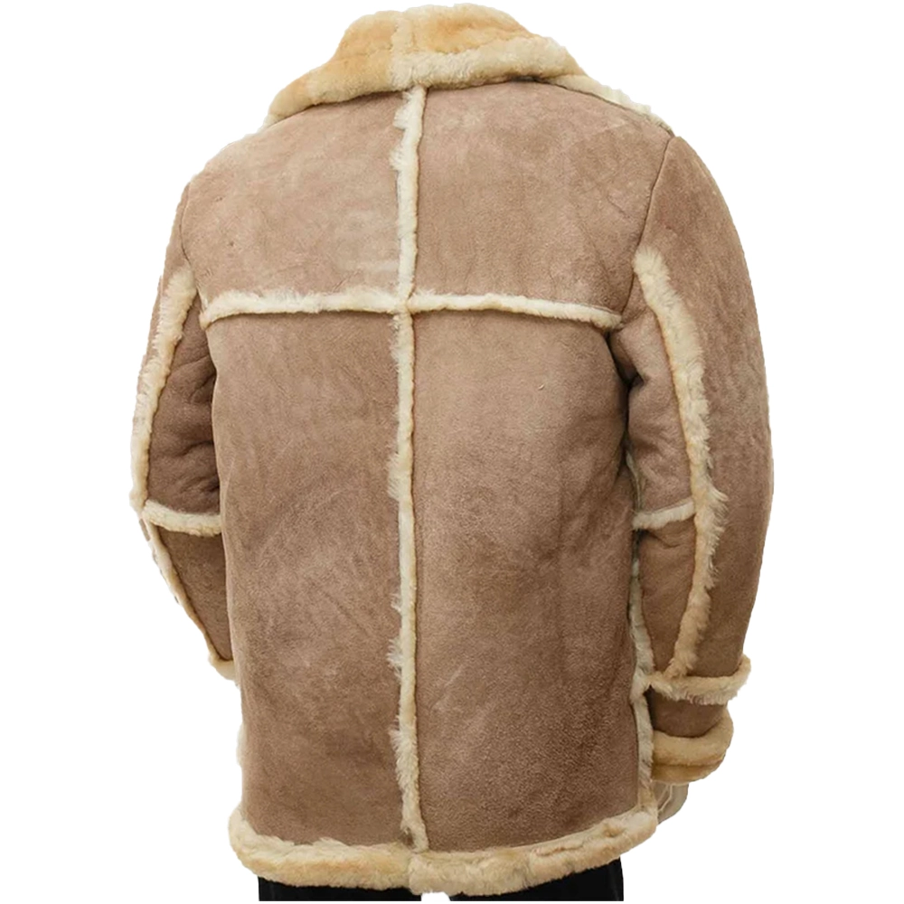 As mentioned above only the best quality sheepskin fabric has been used in the attire’s making. The color Mens Sheepskin Shearling Coat holds is sand brown which reflects the original sheep color making it appear to be more authentic. The different features include a shearling fur collar, long sleeves with buttoned cuffs, two waist side pockets at the front and a smooth to use button closure with stitched fur to complete the fury look.