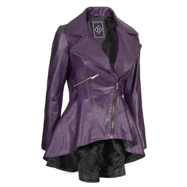 The soft and resilient leather not only increases comfort but also develops a unique luminance over time, giving the jacket a personalized crumb that shows the wearer’s journey. The everlasting design elements, such as the crooked zipper closure and notched lapel, pay honor to the traditional leather jacket exquisite while grabbing a voguish contour. The attention to description extends to the zippered cuffs and carefully placed pockets, putting functionality to the jacket’s stylish figure. Flexibility is core with the Women’s Purple Peplum Classic Leather Jacket. Whether paired with denim for a slack day out or worn over a streamlined dress for a night on the streets, this jacket leisurely transport from day to night, adapting to various styles and thrash.